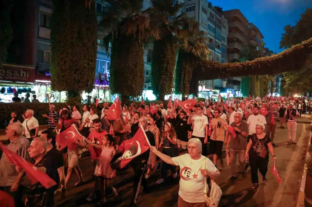 Aydın’ın düşman işgalinden kurtuluşunun 103’üncü yıl dönümü hasebiyle düzenlenen Fener Alayı’na binlerce kişi katıldı. Büyük bir coşkuya sahne olan aktiflikte vatandaşlar geceyi fenerlerin ışıklarıyla gündüze çevirdi.