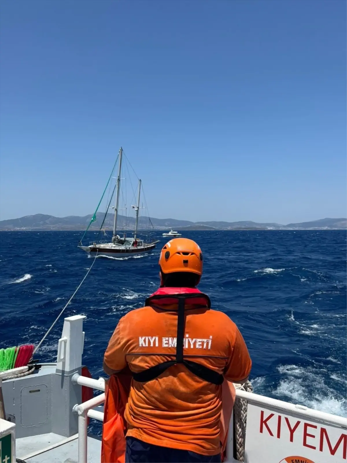 KIYEM-6 süratli tahlisiye (can kurtarma) botunca yedeklenen tekne, Akyarlar’a yanaştırıldı.