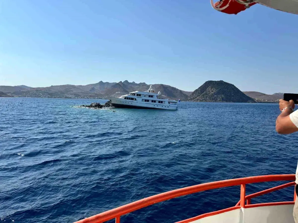Muğla’nın Bodrum ilçesinde kayalıklara çarpan 39 metre uzunluğundaki motoryatı kurtarma çalışmaları sürüyor.