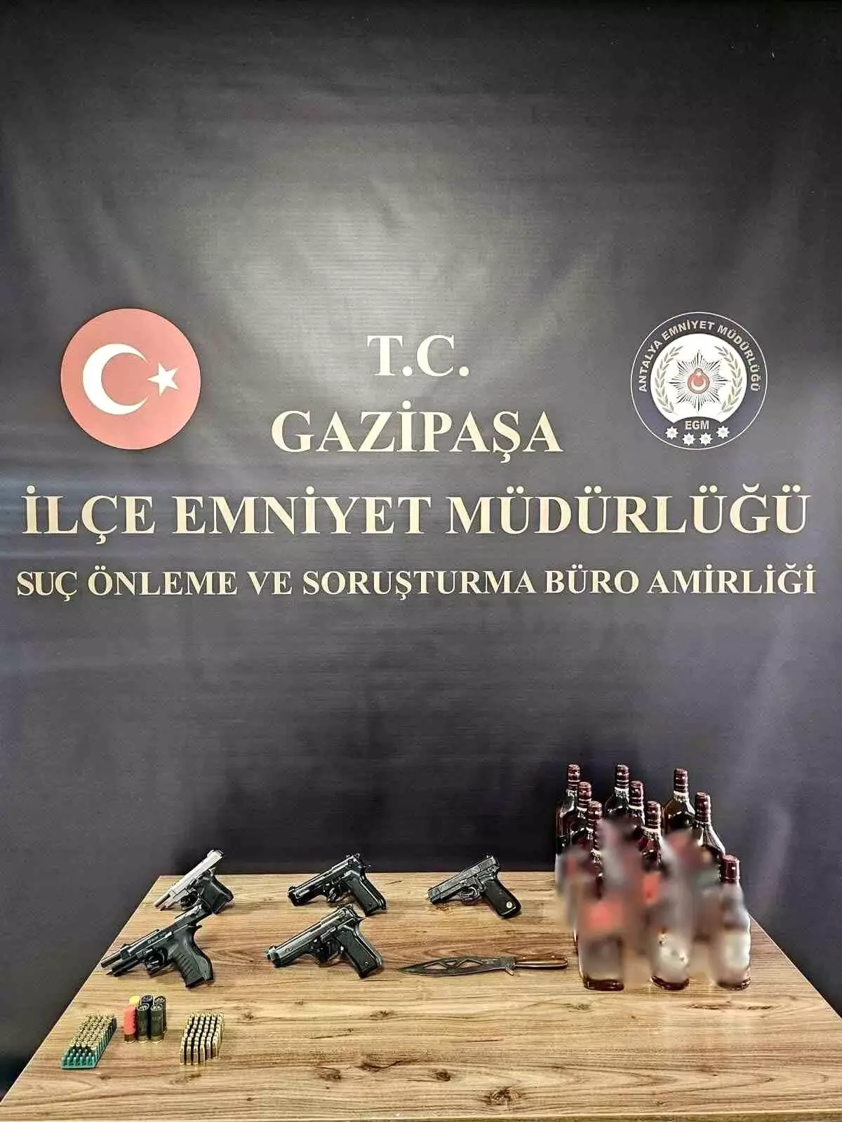 Antalya’nın Gazipaşa ilçesinde düzenlenen operasyonda ruhsatsız silah, fişek ve kaçak alkol ele geçirildi. 9 kuşkulu hakkında isimli süreç başlatıldı.