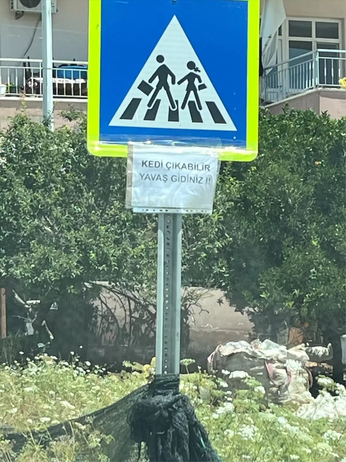 Sanayi Kavşağı’ndan Boğazkent Mahallesi’ne kadar yol güzergahındaki ikaz levhalarına hayvanseverler tarafından “Kedi çıkabilir. Yavaş gidiniz” yazılı kağıtlar yapıştırıldı.