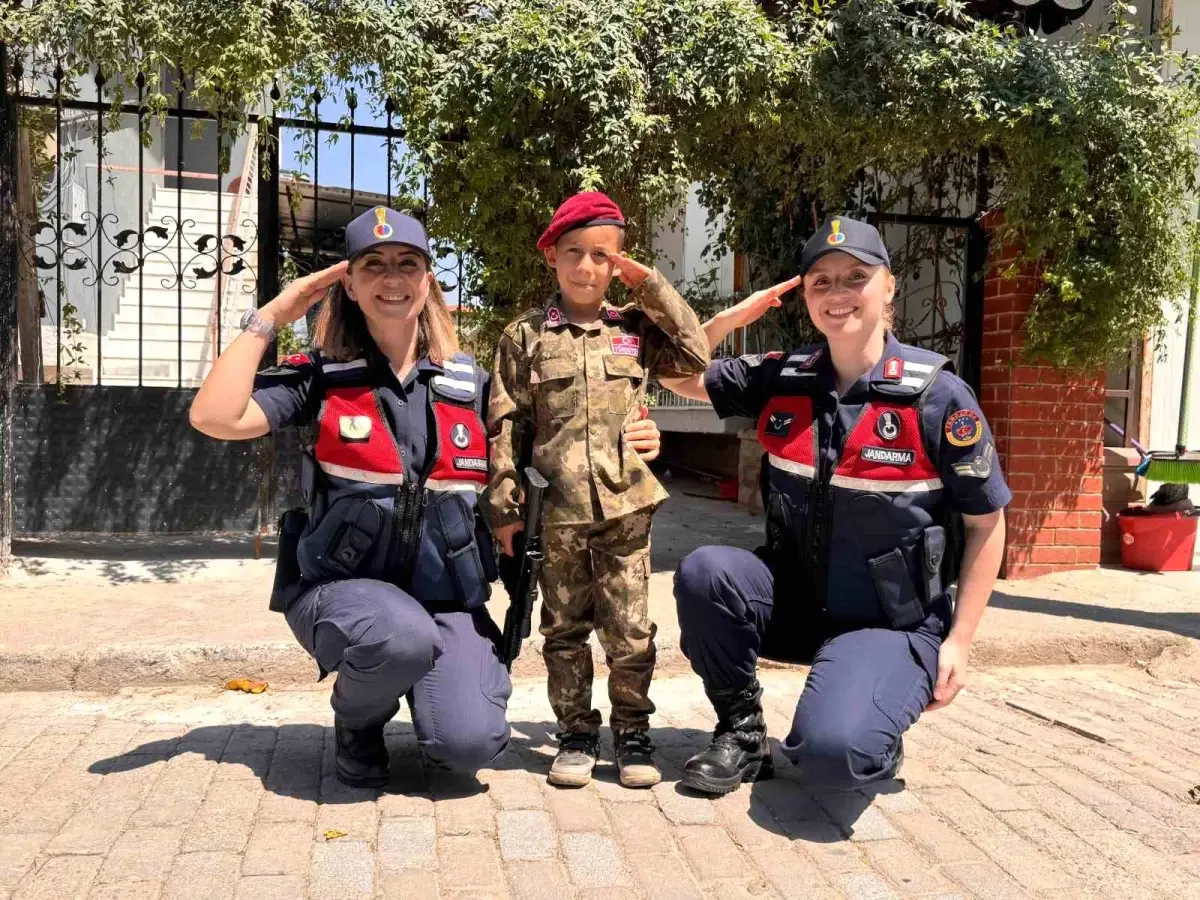 Aydın’da jandarma takımları 15 Temmuz Demokrasi ve Ulusal Birlik Günü kapsamında Komando Andını ezbere okuyan Ömer Halis isimli çocuğu ziyaret etti.