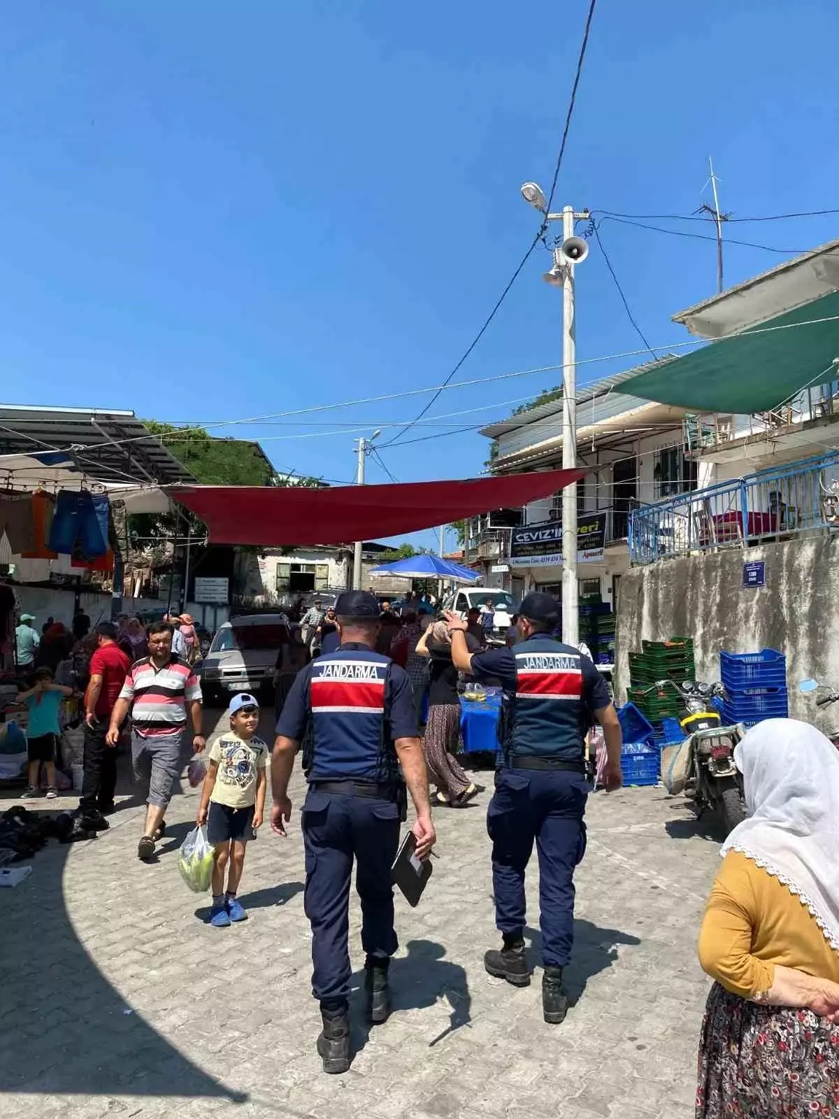 Aydın’ın Karpuzlu ilçesinde jandarma takımları pazaryerinde vatandaşları dolandırıcılık ve hırsızlık bahislerinde bilgilendirdi.