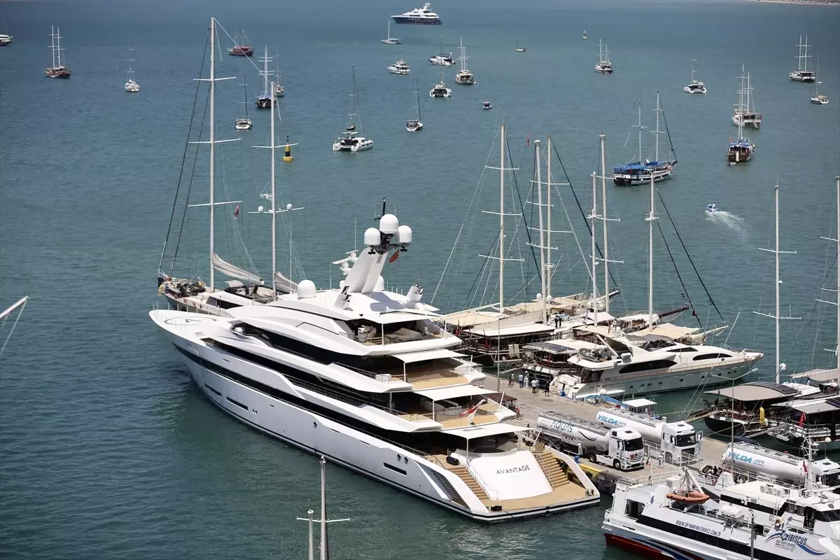 “Avantage” isimli lüks yat, yakıt ikmali için Muğla’nın Fethiye ilçesine geldi.