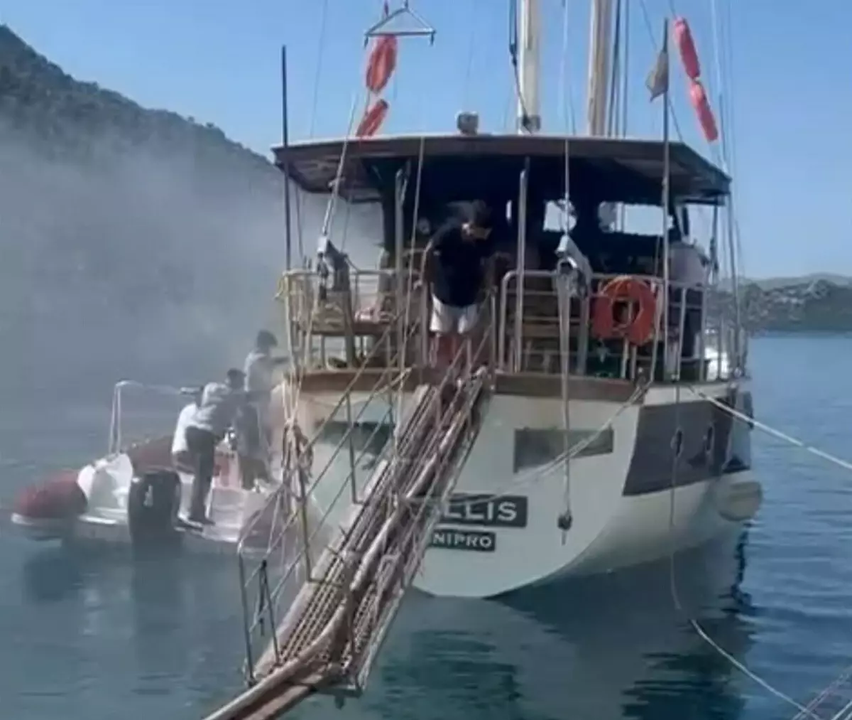Marmaris’in Bozburun Mahallesi’nde saat 09.00 sularında bir tersanenin iskelesine bağlı teknede şimdi bilinmeyen nedenle yangın çıktı. Yapılan ihbar üzerine bölgeye Muğla Büyükşehir Belediyesi İtfaiyesi ve Kıyı Güvenlik takımları sevk edildi. Teknedeki yangın itfaiye, kıyı güvenlik ve tersane işçisinin müdahalesi ile söndürüldü.