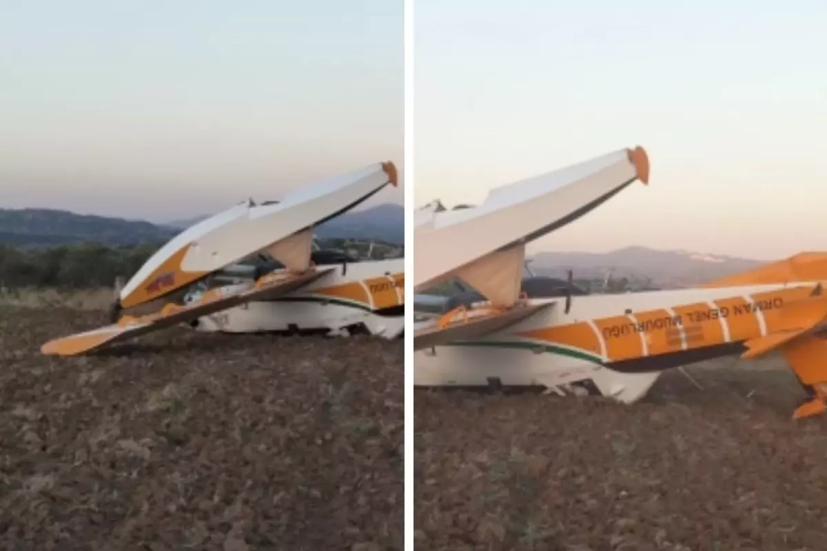 Yangın söndürme uçağı acil iniş yaparken düştü. Uçağın pilotunun durumunun yeterli olduğu öğrenilirken, gruplar bölgeye sevk edildi.