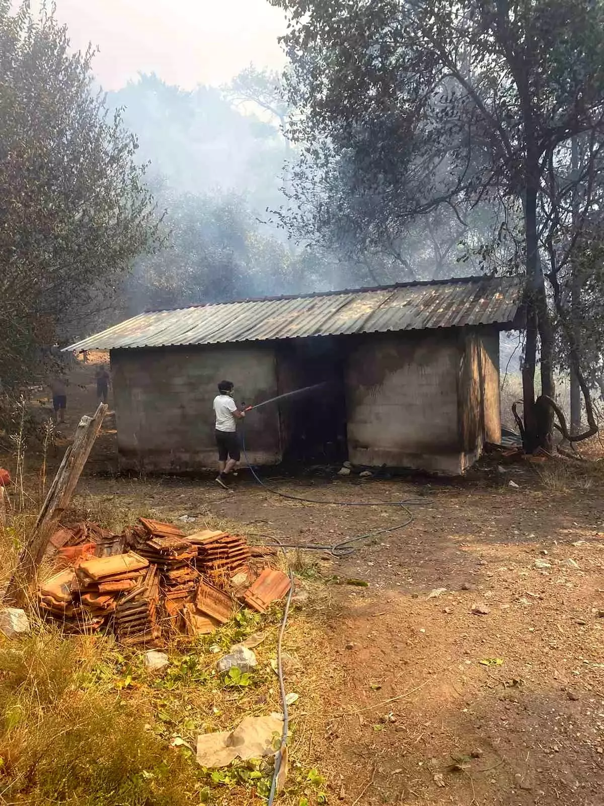 Bölgede depo olarak kullanılan binalara sıçrayan alevler bina içindeki materyalleri büsbütün yakarken, grupların karadan ve havadan müdahalesi devam ediyor. – MUĞLA