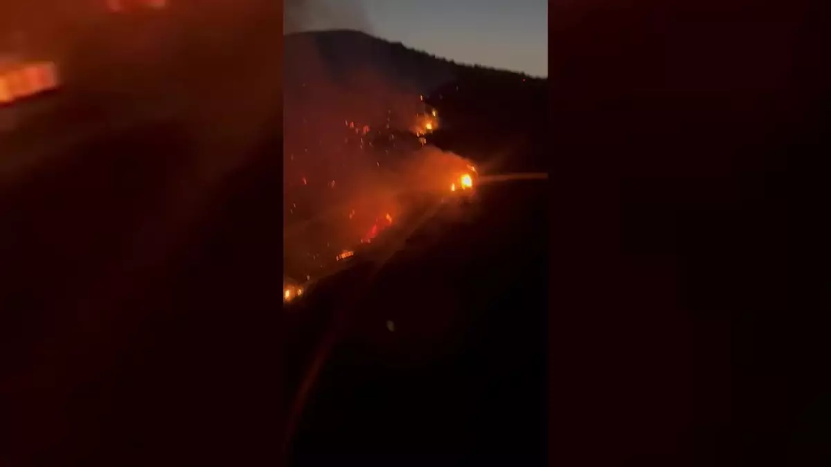 Yangının 4. Saatinde orman bölge ve itfaiye takımlarının yangını söndürme çalışmaları havadan ve karadan devam ediyor.