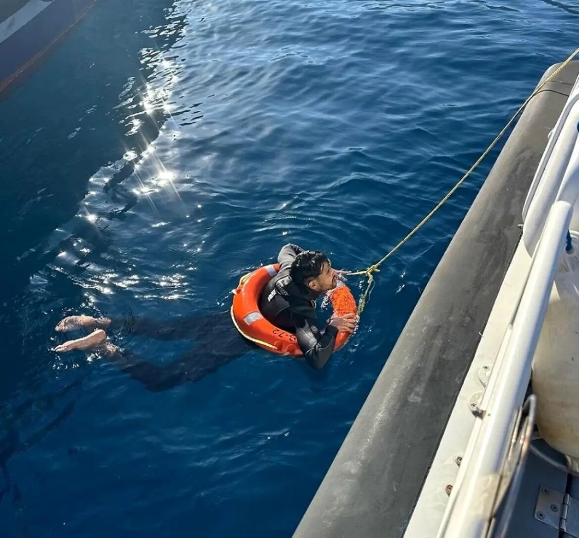 Aydın’ın Kuşadası ilçesinde yüzerek Yunanistan’a geçmeye çalışan ve bitkin düşerek yardım talebinde bulunan bir sistemsiz göçmen kıyı güvenlik grupları tarafından kurtarıldı.